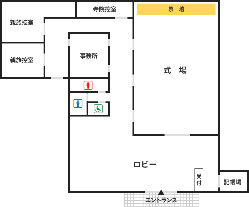- 保有設備親族控室(2室)/会食室/寺院控室/宿泊設備/シャワー・バスルーム