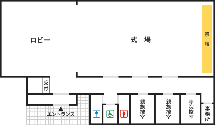 - 保有設備親族控室(2室)/会食室/寺院控室/宿泊設備/シャワー・バスルーム