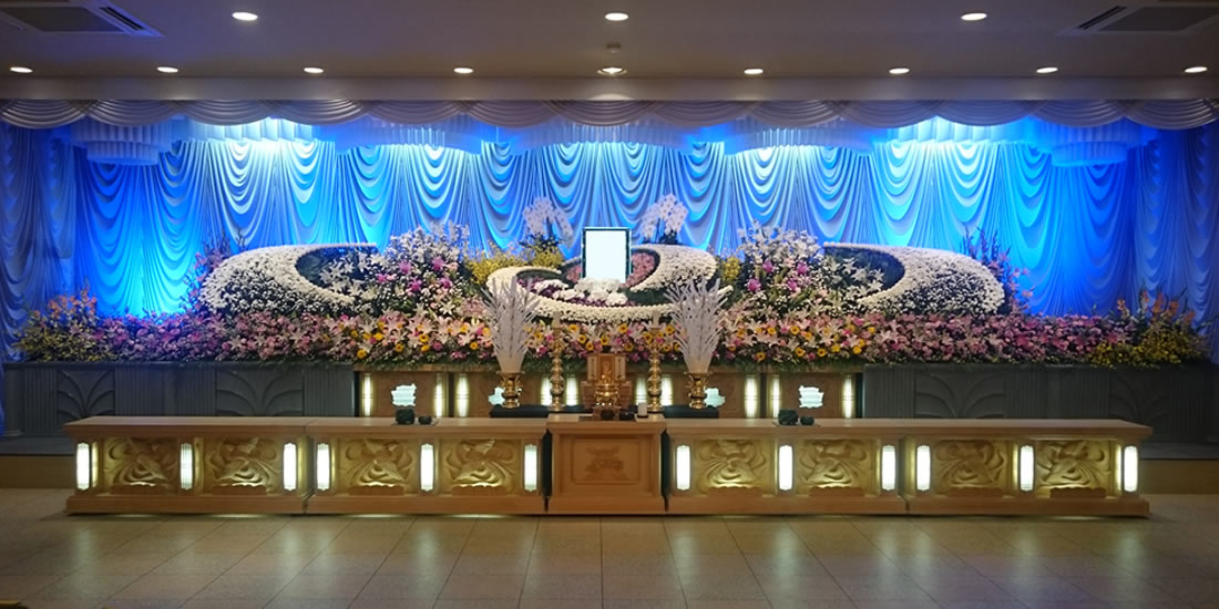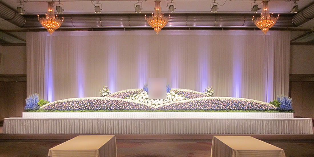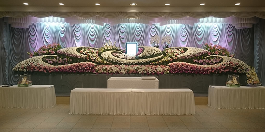 家族葬、一般葬から社葬まで、お花で埋め尽くされたオリジナル花祭壇など、ご希望に応じてご準備いたします。